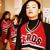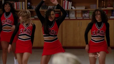 Before the performance, the Glee Club waits in anticipation as Ms. Pillsbury and Finn welcome a special diva joining them all the way from Louisville. Santana enters the room with cheerleaders from the Cardinals. The song begins as Santana and the cheerleaders sing and dance. Brittany and Sam seem a bit unhappy yet surprised while Tina looks annoyed. Brittany watches on the Glee Club as they dance to the song, while she watches with a confused expression. The cheerleaders and Santana pull off impressive and sexy moves, making Ryder look 'interested'.