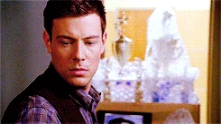 The scene changes, showing Finn entering the former choir room, which is now used by the Cheerios as a practice room. The audience watches Rachel sing while Finn packs up the New Directions' trophies. He places the 2012 National Championship Trophy into a box as he looks at the portrait of Lillian Adler.