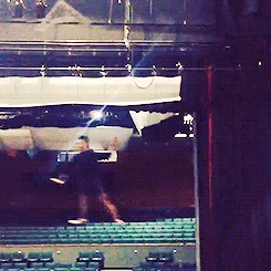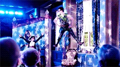 At the Peter Pan performance, Blaine helps Kurt with his costume. Kurt reflects that for the first time since he came to New York, he feels that he has something that gives him purpose. Blaine wishes him good luck and leaves, leaving him to find Maggie. He offers to become her family, saying that he needs someone to talk to since his friends are so busy. She happily accepts, and they share a hug before walking on to perform. Just before he goes on, Kurt rings Rachel to wish her good luck with the benefit. He tells her that his life would be very dull without friends like her, and she thanks him, but tells him that she has to go - her best friend's show is about to start. Shocked, he looks into the audience to see Blaine, Rachel, Artie and Sam. They share smiles and waves.
