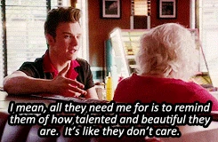 At the Spotlight Diner, Kurt offers to serve an elderly patron. However, she explains that she is here to advertise for the retired performers home's production of Peter Pan. Impressed with her panache, Kurt offers to put it up in the window without even asking his boss. While he searches for sticky tape, the woman asks why he looks so down. Kurt says that he doesn't usually like to bother others with his problems, but she presses him. They sit at a table, and Kurt explains that he feels like everyone in his life has moved on - apart from him - and no one cares. The woman explains that she can sympathize with him, as most of her friends can't hear. They introduce themselves, and Kurt finds out that the woman is Maggie Banks, a Broadway legend. As they are discussing her history, two medical orderlies enter the diner to pick her up. They reveal that they followed the trail of Peter Pan posters that she left through the streets of New York, and begin to help her up to return to the nursing home. Before she leaves, she invites Kurt to come to a rehearsal. He happily accepts.