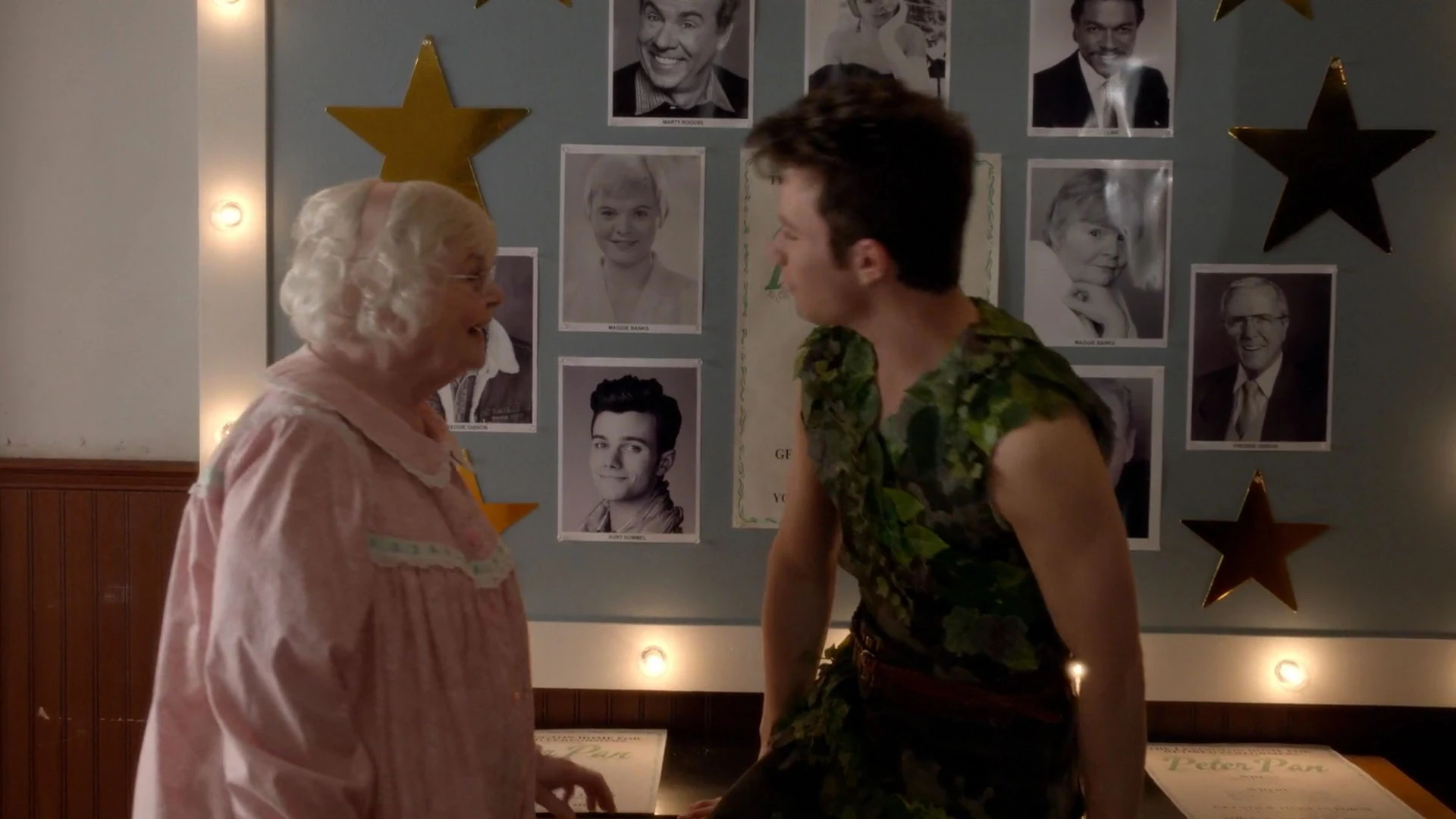 At the nursing home, Kurt walks into a dress rehearsal of Peter Pan. Maggie is both acting and directing, and instructs him to sit down and enjoy the performance. However, there is a gap in proceedings, as the actress playing Peter misses her cue. She eventually flops onto the set on a harness, dangling limply. A man inspects her and announces she's dead. Kurt watches, shocked.
