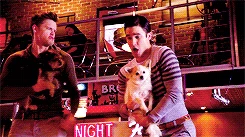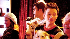 At the rescue dogs' home, Rachel, Sam, Mercedes and Artie look around. Rachel explains to an employee that she wants to organise a publicity event for the home's benefit. Without question, the man says that he's on board with the idea. Rachel is delighted. At a cage, Mercedes and Sam have found a dog that Sam is infatuated with. He suggests that they should get it, but Mercedes stops him, saying that he is all that she can handle at the moment. The dogs begin howling uncontrollably, but the employee reassures the group that it's a regular occurrence. He explains that he used to pipe music through the PA system to calm them, but it recently broke. Sam grabs his guitar, and performs I Melt with You with Rachel and Mercedes.