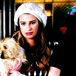 Kurt, Santana, Rachel, and Blaine meet up in a New York cafe. Kurt invites the group to come with him to see a movie, but they all decline for various reasons. Rachel, upset, discovers a Broadway blog that has leaked the news of her secretly skipping a show to pursue other career paths. She emotionally explains that she cannot be branded 'a problem child' this early in her burgeoning career. Rachel insists that she's not a bad person, but Santana maintains that she needs a cause to stand behind in order to save her rapidly plummeting publicity. While arguing, Rachel spots a dog being roughly forced into a handbag on another table. She goes over to remonstrate with the owner, and returns to the table enlightened, explaining that she thinks she may have found her cause.