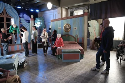 At the old people's home, Kurt attempts to rehearse with the other actors. However, the performance is fairly shambolic, and they begin to question whether they should have chosen Peter Pan at all. Kurt suggests updating the music to make the performance fresher. While they are debating their next move, flowers for Maggie arrive from her daughter, with a note explaining that she won't be able to make opening night. Although she's clearly upset, Maggie does her best to shrug it off, and leaves. Kurt asks a nurse about her daughter, and is told that she hasn't visited in years - Maggie sends herself flowers twice a week to keep up appearances. Kurt listens, concerned.