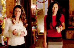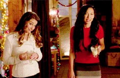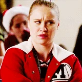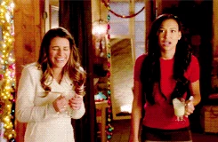 - During the first scene between Kurt and Santana, when he gives her a glass of eggnog Santana is shown about to drink it or just smelling it. However, in the next shot she doesn't have it anymore.