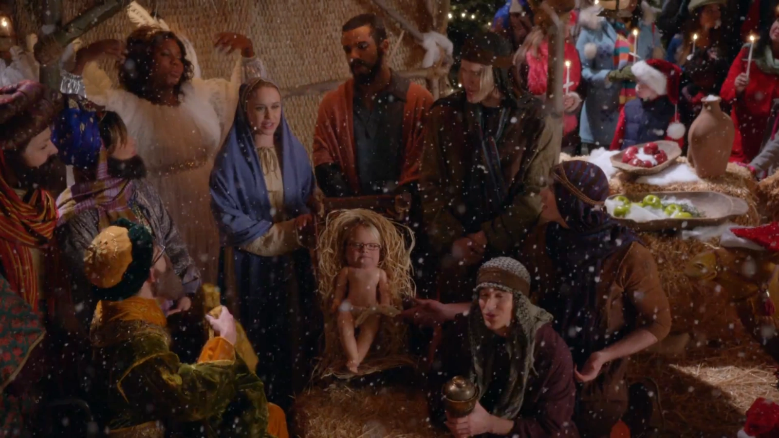 Some edits are made to a never-before-aired Christmas episode that was kept hidden by FOX, which can now be shown. In an alternate universe to Glee, Actually, the Glee Club in Lima celebrates Christmas but also have to prepare for the 50th Annual Christmas Decoration competition, which Becky, Sam, and Tina are all eager to win. The Glee Club (who also have taken the role of The Christmas Club) also have to prepare a living Nativity Scene, and Marley, Tina, and Unique are all eager to play the role of Mary. Despite Kitty secretly wanting the role, she doesn't audition, leaving Marley and the Glee Club to organize the Nativity. In New York, Santana joins Kurt and Rachel for a New York Christmas and Rachel reveals that she's landed them a part-time job as Christmas elves in a Santa Land Mall, which doesn't go as planned.