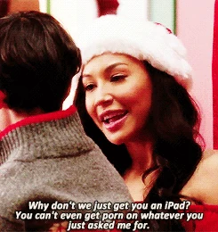 - In the Australian airing of this episode, the part where Santana tells a child that an iPad would be better because he can't watch porn on a laptop, was cut.