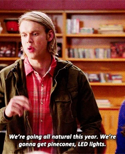 They won't let that happen though, and while singing Rockin' Around the Christmas Tree the Glee Club creates a beautiful tree that is decorated solely with green and environmentally friendly ornaments. Even Sue can't deny the tree is amazing, and sure enough, the Glee Club ends up winning the contest. The runners-up are the Biology Club, the 4/20 Club, and Beiste and the football team - Becky doesn't win, and she's very upset, and sinks into a funk.
