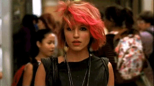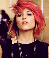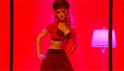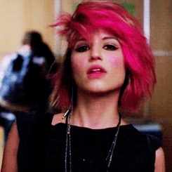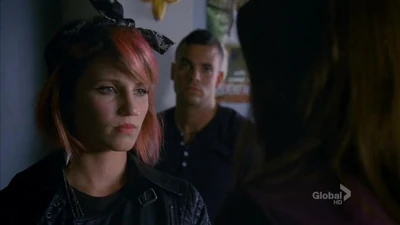 Quinn is found with a brand new image over her summer vacation, as she has turned punk and joined a girl gang, The Skanks. This scene is accompanied by a voice-over, in which she talks in a disinterested tone about her summer. During this scene, we see she has dyed her hair hot pink, got a new nose piercing and an "ironic tattoo of Ryan Seacrest" on her lower back. She walks up to Brittany and Santana and they ask her why she's not joining the Cheerios and the Glee Club this year. She tells them that over the summer she went through a lot of changes and that she finally figured out who she is. Santana says that they joined New Directions and the Cheerios together and they're "like besties for life." Brittany states they used to be like the Three Musketeers, and now she and Santana are like Almond Joy and Quinn is "a Jolly Rancher that fell in the ash tray." Quinn is later seen hanging out and smoking under the bleachers with the Skanks. She is their newest member and doesn't want to be with Santana or Brittany anymore. Later, under the bleachers, the Skanks sniff the smell of soap - it's Rachel, who has hunted down Quinn to tell her that the New Directions are a family and that she should come back, but Quinn explains that Glee isn't who she is anymore. One of The Skanks, "The Mack," offers to give Quinn ten dollars if she'll let her beat up Rachel, but Quinn ignores this. Later in the episode during the scene where Blaine sings It's Not Unusual, the Cheerios, prompted by Santana, douse the purple piano in lighter fluid. The scene culminates in Quinn leaving and flicking her lit cigarette at the piano, which sets it ablaze. In the last scene, she is seen in a darkened corner of the theatre, looking on with jealousy and visible sadness as New Directions perform You Can't Stop the Beat.