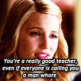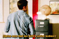 Quinn sings and dances Ice Ice Baby with the rest of the club. Then the Glist appears as a list where the Glee club members were ranked according to who was the most sexually promiscuous. Quinn is at the top, and when asked, she claims Rachel is the culprit due to her grudge against Quinn. After seeing Quinn get bumped into in the hallway, Mr. Schue realizes Quinn wrote the Glist to improve her reputation. She says she never meant to hurt anyone, but can't deal with being invisible, and that a bad reputation is better than no reputation at all. When Quinn asks Mr. Schue if he thinks she could get it all back one day (her popularity, reputation, etc.), he tells her that she won't - She'll get something better. Schue tells Figgins no one came forward and convinces him that since the lists have stopped they should move on without suspensions and Quinn silently thanks him.