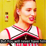 Just before the yearbook photos are taken, Quinn resolves to be back on the Cheerios after sitting with Brittany and Santana as they deface a Thunderclap. She blackmails Sue by threatening to reveal the fact that the Cheerios will make a profit, which could get them disqualified from the competition. Sue agrees to let her back on the squad. Sue then says she has to be at the back of the photo to hide her shame. She then makes a rude comment about Quinn's pregnancy. Offended, Quinn instead rejects her offer and tells her to give up one of her yearbook pages to the Glee Club as she rather be with people who accept her for who she is, forcing Sue to agree. Sue admits to Quinn that she forgot how ruthless Quinn really was. Quinn thanks Sue for indirectly teaching her this lesson, and then storms out, leaving Sue speechless. She performs background vocals in Jump and Smile.