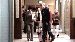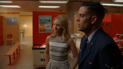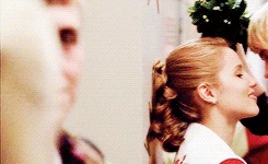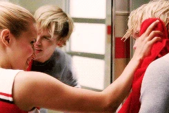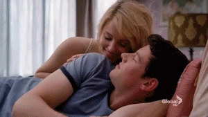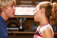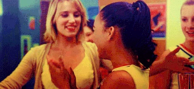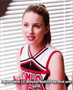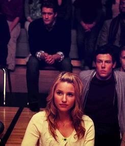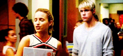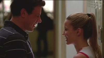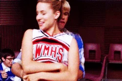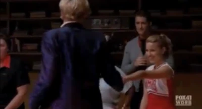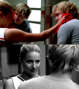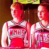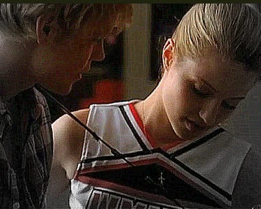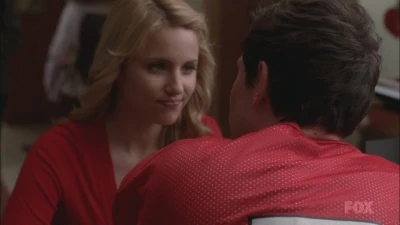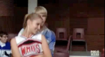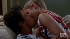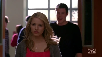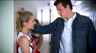 Mr. Schue explains that the Cheerios who are also in the Glee club (Quinn, Brittany and Santana) have to choose between Cheerios and New Directions, after Sue delivers them an ultimatum regarding their loyalties to both New Directions and the Cheerios. Rachel believes Quinn will choose the former due her growing popularity. Finn stands up for her, stating that she (Rachel) doesn't know what Quinn is going to do. But after Quinn decides to quit the Glee club in favor of the Cheerios and her growing popularity, Finn, as Co-captain of New Directions, begins to shout at Quinn, asking why she chose the Cheerios over the glee club. After he cites her actions as being "weak," Sam immediately comes to her rescue where they get into a pushing match. On the day of the big football game and the Cheerios' Regionals competition, during the game's half-time, as Finn attempts to persuade Quinn to rejoin the club, she is noticeably touched by his words as they are genuinely nostalgic and sweet, and agrees, along with Brittany and Santana, to quit the Cheerios and return to the football game with Finn. As the football team scores the winning touchdown, Quinn stares lovingly in Finn's direction (something they used to do), which he immediately reciprocates. At the end of the eventful week, Quinn leans against a bank of lockers (reminiscent of the 'I love you' scene in Season 1), catching Finn off-guard. She thanks him for his guidance towards helping her make her choice to stay in Glee club, declaring that it was these qualities that made her fall in love with him, before giving him a lingering kiss which leaves him speechless.