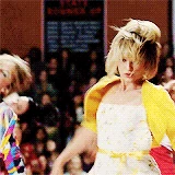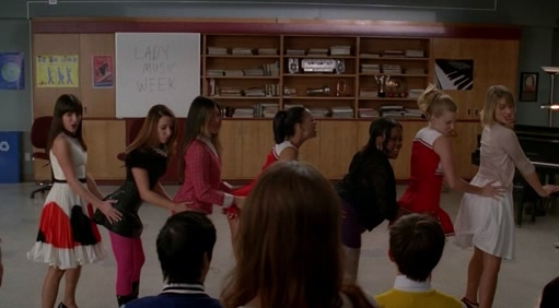 When Rachel asks for help with boys and sex, Quinn requests she stop talking as she is grossing her baby out. Quinn then informs Mr. Schuester of the sexism in society and the lower salary of women, making him choose Madonna as a Glee assignment. Quinn joins her fellow female members in singing Express Yourself in which she has a solo. She is later seen happily watching Kurt and Mercedes singing with the Cheerios. She performs background vocals in Like a Prayer.