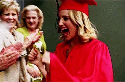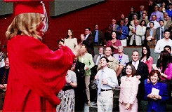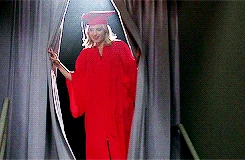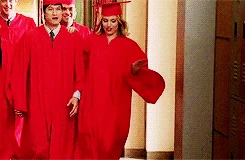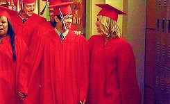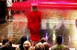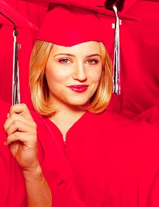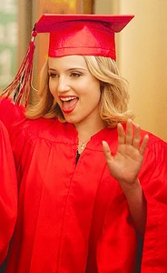Quinn is performing the song the graduating members sing to the non-graduating members, You Get What You Give and is sadden by the fact that she has to leave her friends. She enjoys the song the non-graduates sing for them, In My Life and watches Puck from the side. She later has a voiceover of her high school experience where she sees Puck struggling to study. She talks to Rachel about their friendship in the girl's bathroom and Rachel tells Quinn that she thinks Quinn is meant to be with Puck. At her house, she helps Puck study and gives him words of encouragement and tells him she loves him as well as a kiss. In Sue's office, Quinn tries to return her cheerios uniform but Sue tells her to keep it. Sue and Quinn talk about how much Quinn has changed and grown up over the years and Quinn tearfully hugs Sue and says that she will miss her, which leads to Sue saying, "I don't see how that's possible." She graduates and near the end is seen saying bye to Rachel while hugging Santana.
