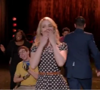 Quinn doesn't have much of a role in the episode, but she is seen enjoying the performances her fellow Glee Club members put on. She also doesn't speak.