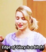 Quinn and Tina are asked to take over for Mercedes in the Troubletones after Mercedes gets sick from eating a bad burrito. This is something Quinn is unsure about but is encouraged by Mr. Schue to do it. Later while everyone is practicing, Quinn is seen to be having trouble with the steps to the dance numbers for the performance. When the competition is about to start and everyone is getting ready to perform, Mercedes comes in feeling a lot better and Quinn sees this as a chance to get out of taking over Mercedes' part but Mercedes insists that Quinn and Tina still perform with The Troubletones. Behind the curtains, Quinn, Santana, and Brittany, known as the Unholy Trinity, have a moment together. Quinn performs Edge of Glory with The Troubletones and Tina without trouble. Near the end of the episode, during We Are The Champions Quinn gives Mr. Schue a hug and kiss on the cheek.