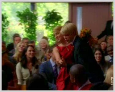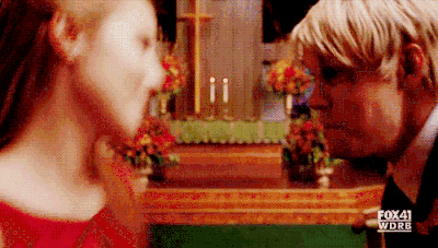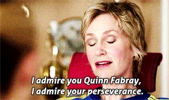 Sue tells her that she is pregnant. Quinn then gives her some advice; then Quinn asks her if she can rejoin the Cheerios but Sue says no. She appears with The God Squad to talk about the attempted suicide of Dave Karofsky, and as she discusses it with Kurt she gets into an argument with him about it. Later, Quinn is seen with the other New Directions members talking about Dave's issue. She sings back-up vocals inFly/I Believe I Can Fly and Here's to Us at Regionals. Later, she is seen with Sue again, and Sue tells her that at first she admired Quinn because she reminded her of what she was like when she was young; however, she then tells Quinn that the reason she admires her is because she is different from her. She then gives Quinn her cheerio's uniform. Subsequently, she sees Rachel and tells her that she supports her marriage to Finn, after asking if Rachel's performance of Here's To Us was directed towards 'Finn and only Finn,' to which Rachel confirms that it was. At last, she is seen going to Rachel and Finn's wedding but she runs a stop sign, texting Rachel "On My Way" while driving, and is hit by a truck as the episode ends with "To Be Continued" rolling onto the screen.