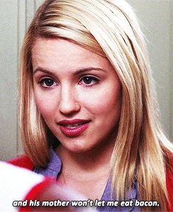 Quinn gives Mercedes her permission to date Puck but warns her to be careful of Santana who also wants Puck back. She also mentions how Puck's mother won't let her eat bacon. She sings background vocals in One.