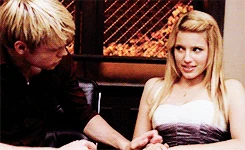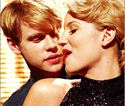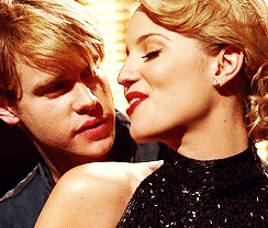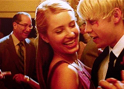 Quinn comforts the new kid, Sam, and helps him clean up after he had slushies thrown on him for joining glee club. Later, they agree to sing a duet together for their weekly assignment, but when Sam tries to kiss her, she panics, fearing that by getting into another relationship, she would be going down the same path she did last year and she would lose her newly regained popularity. She decides not to sing with him. However, Rachel and Finn convince them to pair up again. They sing Lucky as their duet and win the competition and two free dinner coupons to Breadstix, to which she immediately tells Sam, "This is so not a date." At the dinner, Sam tells her he thinks she was really brave for returning to McKinley after going through a pregnancy the previous year. He confides in her that he knows what it's like to hide something about ones' self and Quinn immediately jumps on the topic, asking if Sam is actually gay, an assumption made by Kurt earlier. He denies this, and instead reveals he uses lemon juice to make his hair a lighter color. After this she puts the coupons away, and tells Sam that he would be paying for dinner as "a true gentleman always pays on the first date."