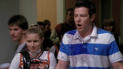 Finn gets hit with a slushie by a football player, Dave Karofsky while walking with Quinn. This angers Quinn, and she defends Finn by telling Karofsky he and his friends are nothing. Karofsky claims Finn and Quinn don't have the popularity juice to do anything about it anymore. In the choir room, Quinn is seen washing Finn's face and talking with him about their popularity. They wear sunglasses under the guidance of Emma to make themselves seem cool again, which ends in them both getting slushied by Karofsky and the football team. Sue kicks Quinn off the Cheerios after being angered by catching Rod Remington kissing his co-worker, leaving her alone in the hallway, shocked.