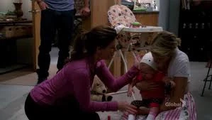 Sue spots Quinn quivering at the top of the cheerleading pyramid, which Quinn blames on being tired from the glee club while Sue confronts her. When Terri takes a job at the school as a nurse after being prompted by Sue, she gives all the glee club members decongestant pills (the so-called Vitamin D of the episode), except Quinn who gets folic acid instead as it is good for the baby. After that, she tells Terri that she can have her baby and asks her for money. However, Terri declines by saying she is going to pay for eighteen years of the child already.