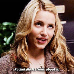 Quinn comes again to the mean side. The first Quinn scene is her seeing Finn and Rachel sitting in the choir room talking about another failed attempt of Rachel's song writing. It then proceeds to be a Quinn voice over where she says that she really likes Finn and that he was her first love and first loves are forever. She then wonders how "damaged" Finn is to ever have been interested in someone as annoying as Rachel. She then expresses the desire to become prom queen alongside Finn as prom king because she knows she will never get there without his newfound extreme popularity to get her votes. She realizes the only thing standing in her way is Rachel and her talent. In order to make sure Finn doesn't stray away from her, Quinn decides to become "friends" with Rachel working off the motto, "keep your friends close, but your enemies closer." The next day in glee club when Rachel springs her idea to do an original song again, Quinn agrees with her, to the shock of others. She compliments Rachel's talent, telling the club that they have a great song writer in their midst and that she would like to help Rachel write a song, only her knowing her ulterior motive. Eventually everyone piles aboard to the original songs idea. Later on, Quinn approaches Finn at his locker and they talk about prom and her desire to have them back on top, only being able to be if they are elected for prom king and queen. She decides that after Regionals that they would go public with their relationship and start to campaign, which after some debate, Finn agrees to. They continue to walk down the hall with her arm wrapped through Finn's for a short time before pulling away. From behind, Rachel sees this, leaving her suspicious. In the auditorium, secluded from the rest of the club, Rachel asks Quinn point blank if she and Finn are back together. Quinn bluntly tells her they are, and have been for a couple of weeks, and continues asking Rachel if, "she wants to know how this story plays out?" She tells Rachel that she doesn't belong in Lima, she's meant for bigger things and it's time she accepted that her life plan is too big and doesn't have room for Finn. Somewhat bitterly, Quinn says that she and Finn will stay in Lima, she'll be a real estate agent and Finn will take over Burt's tire shop, while Rachel lives her dream. When Rachel insists it is not over between her and Finn, Quinn tells Rachel that she is living a "school girl fantasy of life," and until she realizes that life doesn't have a perfect storybook ending, she'll never "get it right." From this, a distraught Rachel writes the ballad number for Regionals, Get It Right. During the Warblers' performance, Quinn makes a show of holding Finn's hand when she catches Rachel staring at Finn and Finn returning the gaze, but this doesn't stop him from gazing at Rachel tenderly during her solo, and after their Loser Like Me performance, Finn wraps his arm around Rachel, as Quinn watches, bitterly aware that she might be losing him all over again. She is jealous of the chemistry between Finn and Rachel.