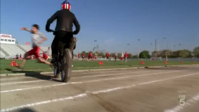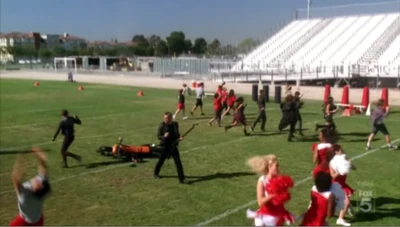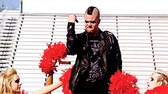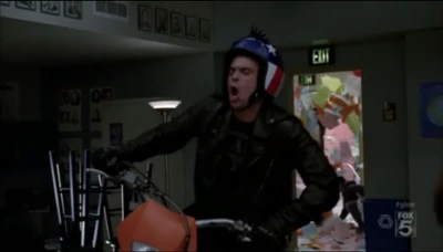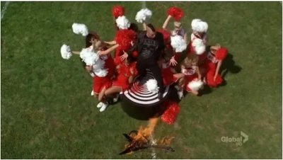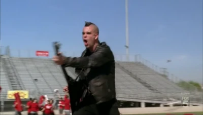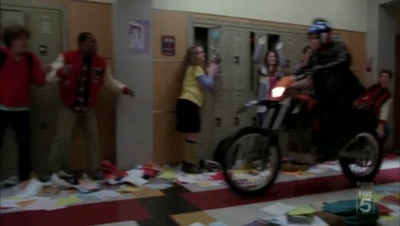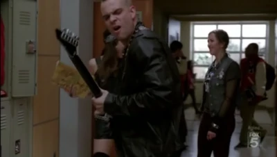 This song was sung by Puck after he decided to screw school. The performance starts from the hallway, to the choir room where New Directions is watching in a complete shock, some, being scared of the people in which Puck brought with him; back to the hallway as he rides a motorbike down the hallway and on the Football Field where he dances with the Cheerios and the football team. At the end of the performance, Puck lights the guitar and is seen back in the choir room with New Directions looking on with confused faces as he exits the choir room.