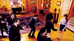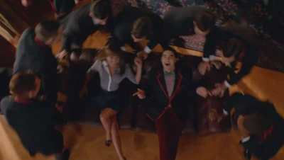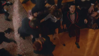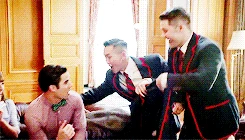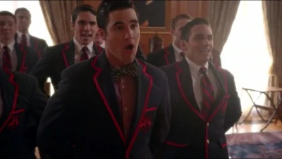 Blaine brings Rachel to Dalton Academy to watch the Warblers - who he now coaches- perform. During the number the Warblers give Blaine his old blazer and he joins them in the number. Afterwards Rachel jokes that Blaine is too old to be singing with the Warblers and thanks them for the song.
