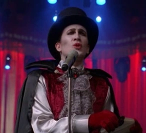 He appears in On My Way as one of the three judges of the 2012 Regionals competition, it is apparent from the response of the audience and people such as Finn, Sugar, Sam and Blaine that he is very popular, although Kurt is afraid of him. When the performances end, he emerges from a coffin brought on stage by two stagehands to announce the results and has been hug by Sugar.