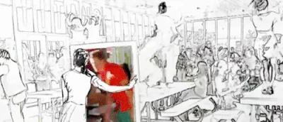 After Rachel and Kurt explain they have called the Alumni to ask for their help recruiting people for the Glee Club, Kurt suggests going out into the school and "breaking Sue's cage." Kurt turns on a stereo and the music starts as everyone's looking at Artie's drawing board. The Alumni perform the song while being shown with a cartoonish drawing effect, showing them running away from Sue while she chases them everywhere they go. At the end of the song, Sue arrives at the cafeteria and ends the cartoon sequence. Rachel looks on worried as none of the students seem interested to join the glee club.