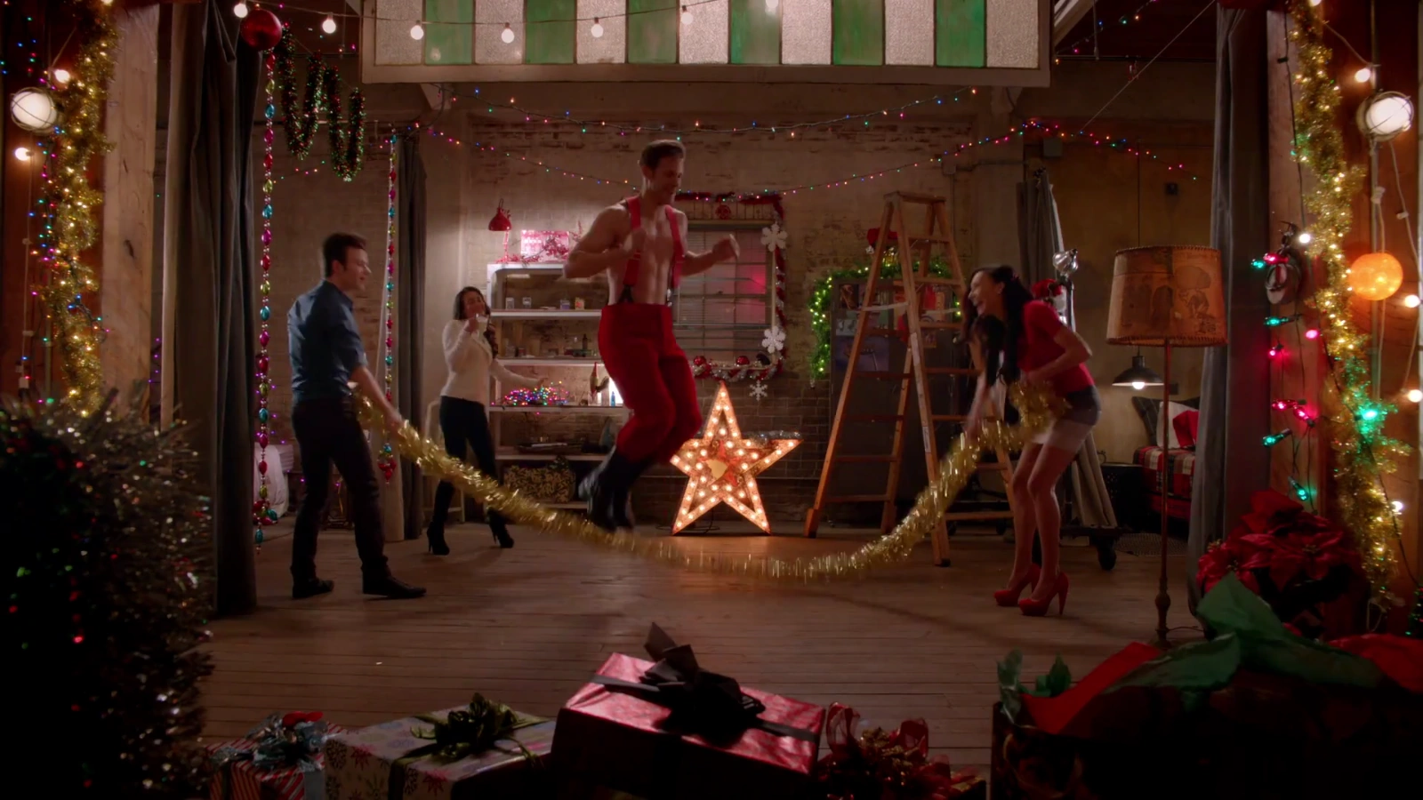 After Cody agrees to have dinner at the Bushwick Apartment to get to know his "elves" better, he arrives and looks around the apartment, seeming interested in it. He pulls out helium, balloons and costumes in his bag as he has an idea to sing a song with the three of them. The song begins as Kurt, Rachel and Santana use balloons and helium to make their voices higher like chipmunks. They sing and dance in their chipmunk voices around Cody to get his approval, acting as his elves. Together, they dance, dress in costumes, do different activities and drink their egg nogs. At the end of the performance, Rachel, Kurt and Santana laugh and sit together, looking drowsy as Cody looks around, satisfied.