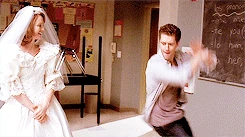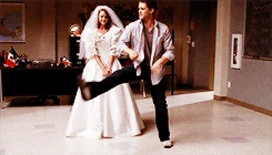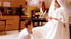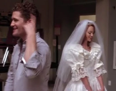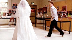 Emma decides to wear a wedding dress belonging to her cousin - her cousin didn't wear her dress to the dance rehearsals and her husband kept stepping on the train (apparently they had a fight and were divorced three months later). At the end of the number, Will and Emma fall onto each other and it looks as if they are about to kiss. Ken, shocked, sees them through the window.